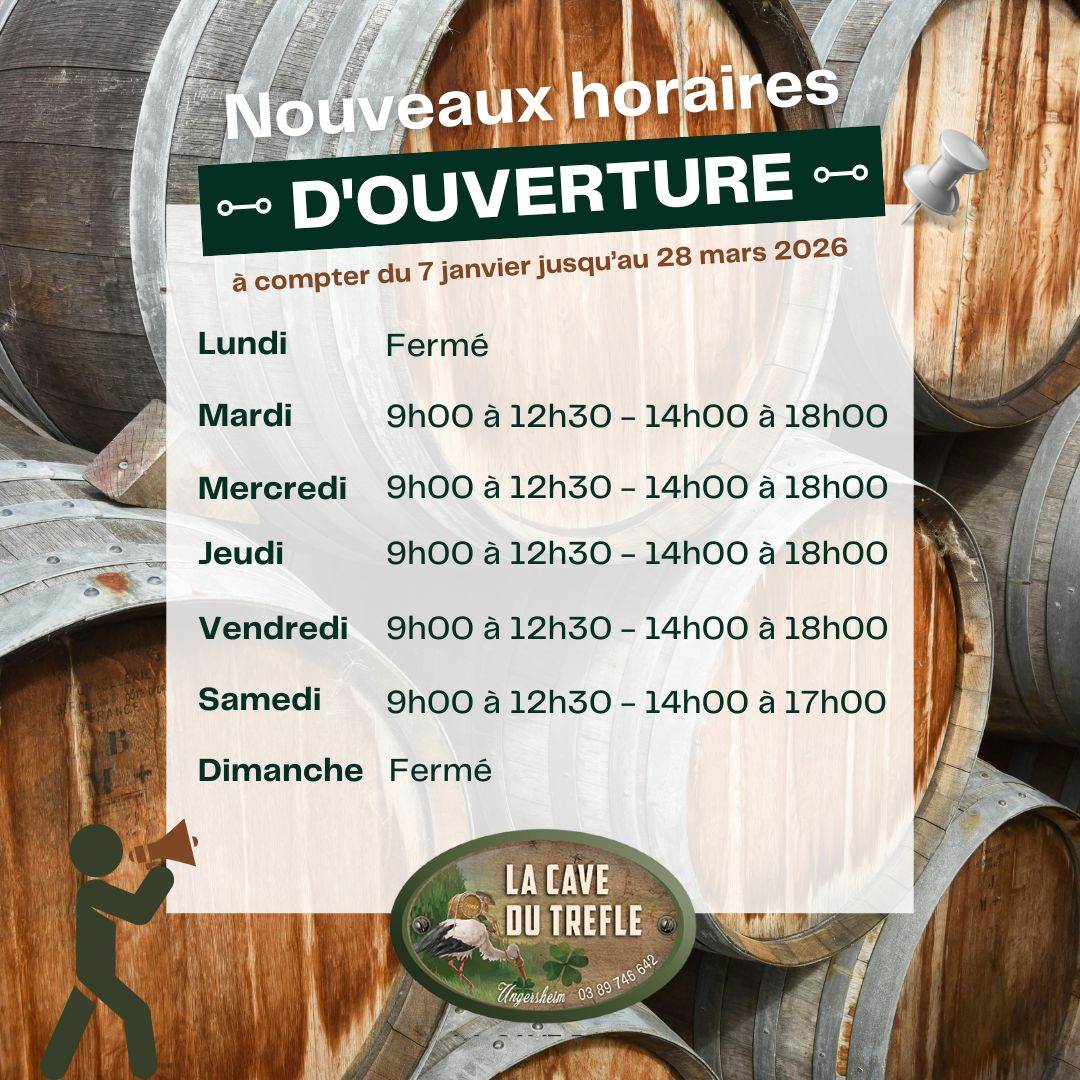 Nouveaux horaires à compter du 7 janvier jusqu’au 28 mars 2026